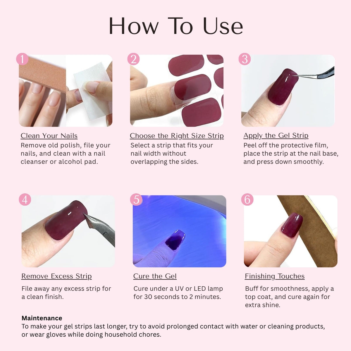 Transform your nails in minutes with our easy-to-apply, long-lasting gel strips.
